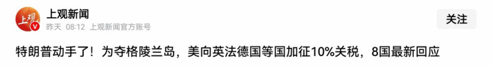 上官新闻——特朗普动手了!为争夺格陵兰岛,美向英法德国等国加征10%关税,8国最新回应
