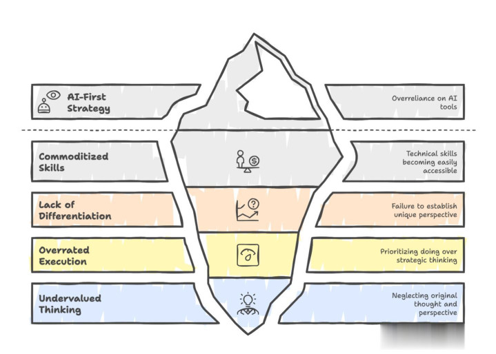 重构业务基础:不要在 AI 擅长的边界与之竞争。你的所有这个词业务时势必须再行建筑在 AI 之上,把它动作基础设施,而不是一个援救用具。