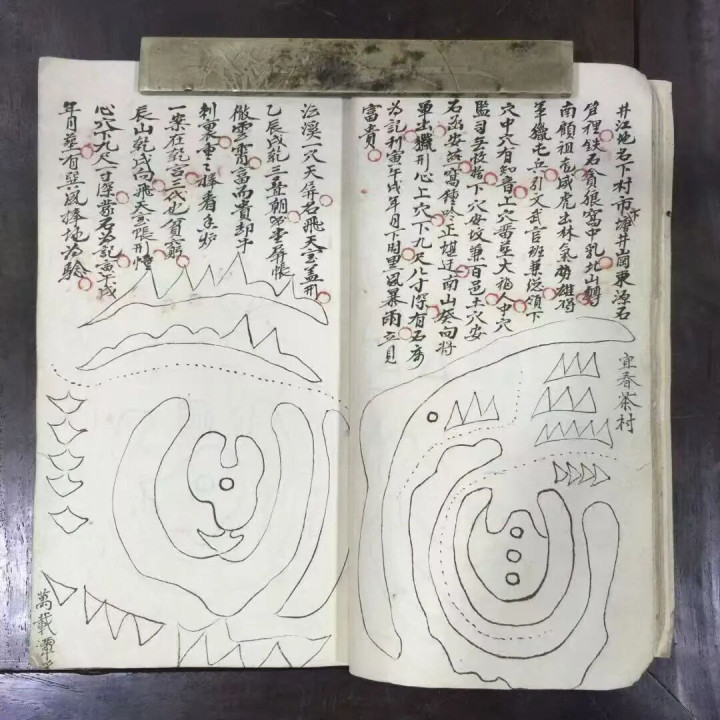 寻龙辨脉定乾坤,点穴立向旺子孙;两册秘藏龙脉诀,百七页中藏真机。此套《地舆龙脉》为清代至民国年间民间秘传风水手本,落魄两册缱绻 170 页,完整收录杨公峦头派寻龙、点穴、察砂、不雅水、立向全套秘法,是历代风水师行山点穴、选址造葬的实战宝典,号称龙脉风水的传世珍籍。