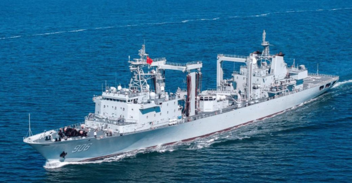 补齐这个短板,中国海军在家门口打局部战争的能力稳了,在南海演习时补给舰穿梭舰间,提供持续作战支持。