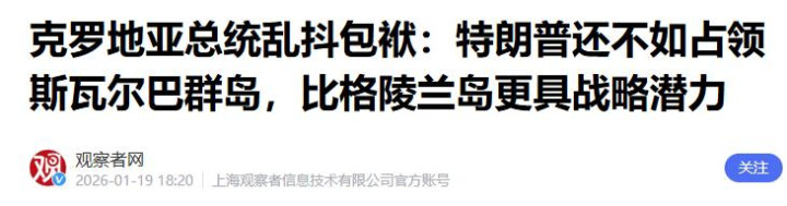克罗地亚总统乱抖包袱:特朗普还不如占领斯瓦尔巴群岛,比格陵兰岛更具战略潜力——观察者网