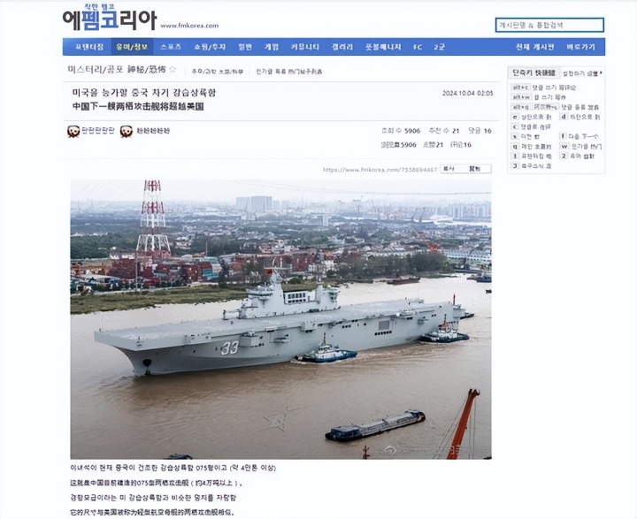 在讨论076舰时,不少韩国网友感叹韩国无法像中国一样快速推进这种大型舰艇的建设计划。