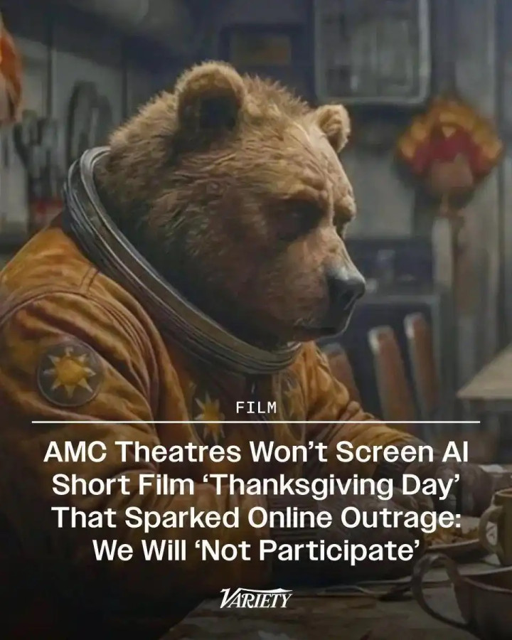 前段时刻,不雅众集体禁止AI实质进影院即是直不雅的例子。不久前,一部名为《感德节》的AI动画短片,在首届Frame Forward AI动画电影节上摘得桂冠。按照电影节的奖励要求,这个AI动画短片能在全好意思院线进步履期两周的映前展映,AMC率先引进,但没意想的是,此举在酬酢平台上引起劈头盖脸的骂声。