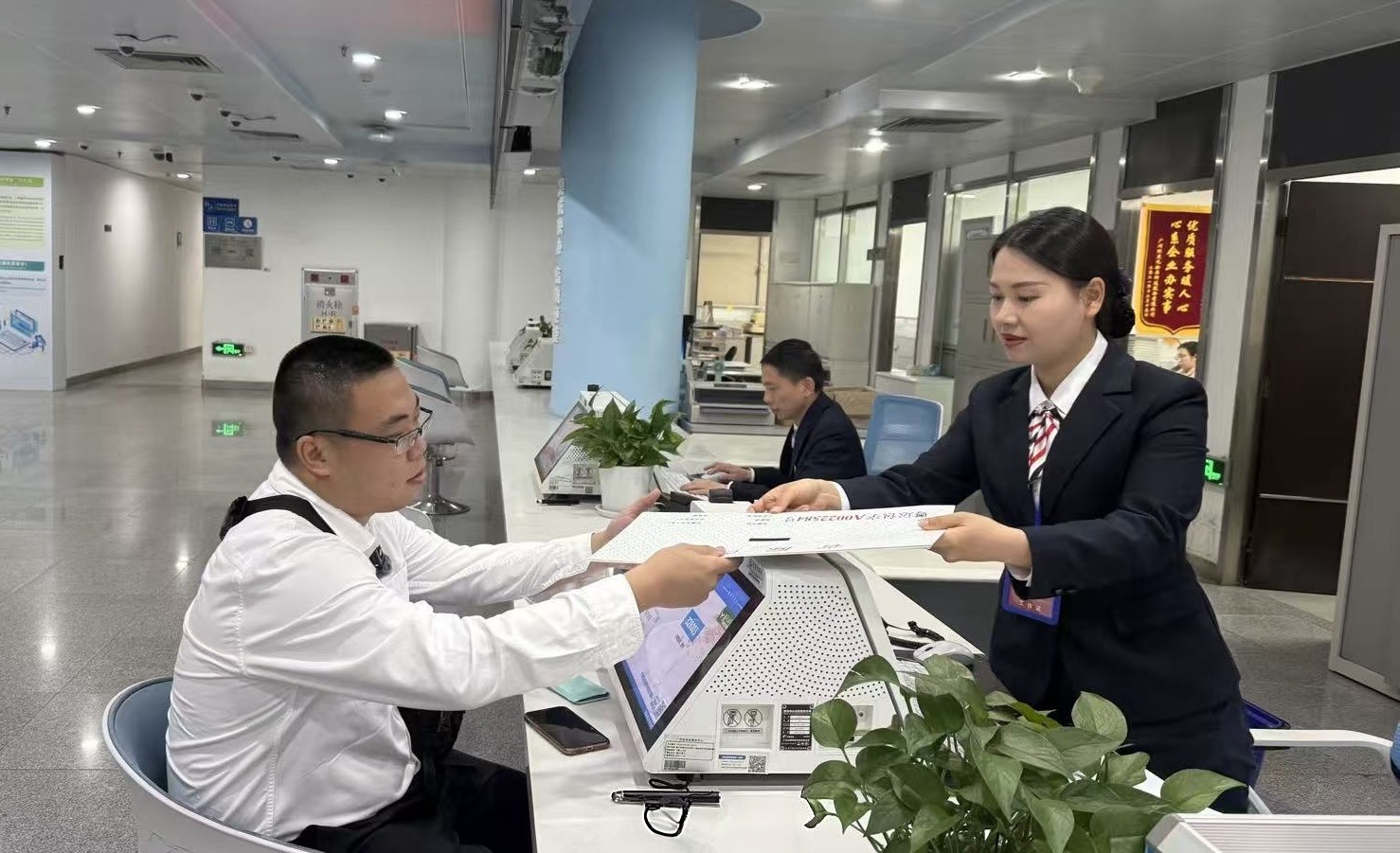 群众步入大厅的顷刻间,系统便自动识别待办业务现象,精确匹配服务窗口,并及时将列队情况推送至群众手机,业务信息同步推送至服务窗口,职责主说念主员提前备好证件,全程无缝衔尾。群众只需属意短信请示,按照指引直达对应窗口,米兰app官网版即可快速办结。