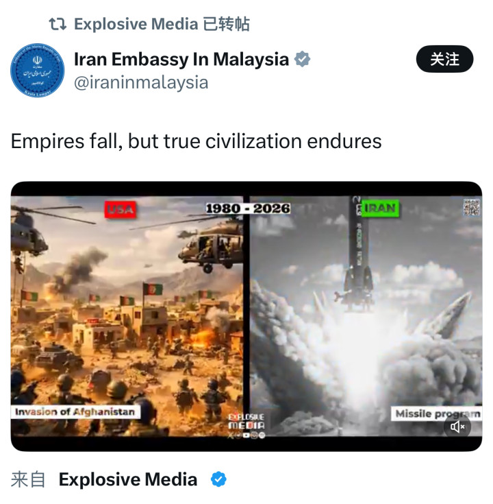 而这种作念法随机地陶冶了敌手怎样反击。伊朗驻多国大使馆的酬酢媒体账号运行“整活儿”。