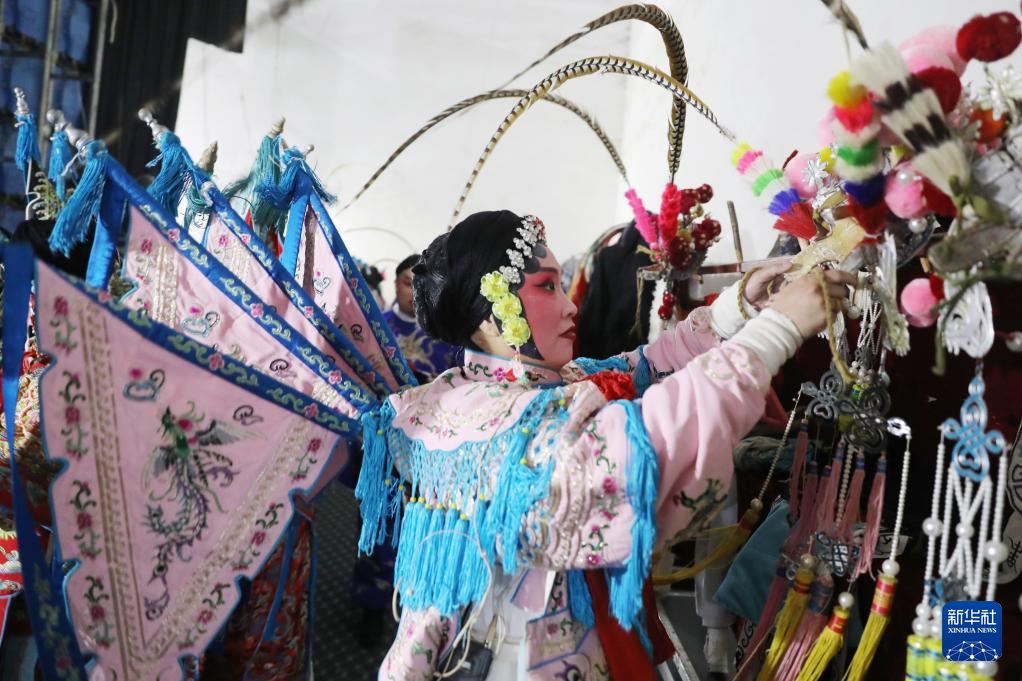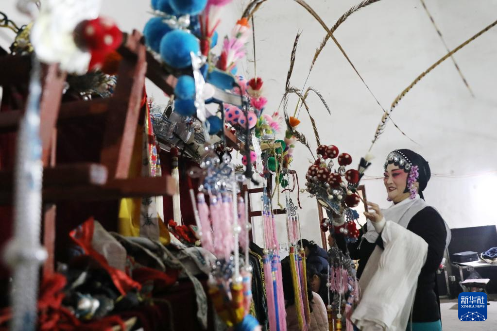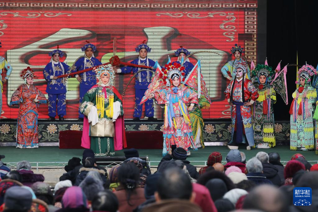 米兰app官网版河南省焦作市温县组织戏曲院团、乡土剧团下乡饰演,让乡亲们在家门口乐享戏曲“大餐”。 新华社发(徐宏星摄)" />