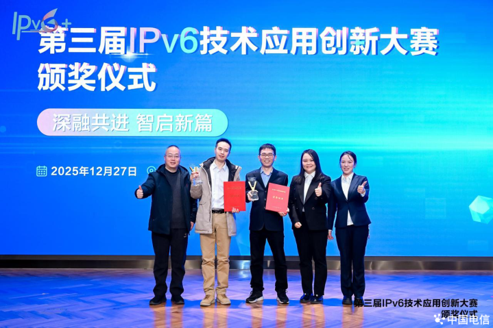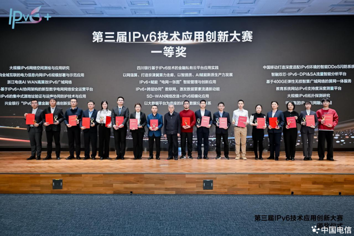 一直以来,中国电信浙江公司始终以技术创新为核心驱动力,深耕IPv6技术研发、数据治理与行业应用,此次双项目获奖是对企业技术实力与创新理念的高度认可。未来,中国电信浙江公司将持续深化IPv6+与AI、5G、云计算等技术的融合创新,积极探索更多可复制、可推广的行业应用方案,为数字经济高质量发展筑牢网络与数据双重底座,在推动我国IPv6规模部署与应用升级的道路上持续贡献电信力量。