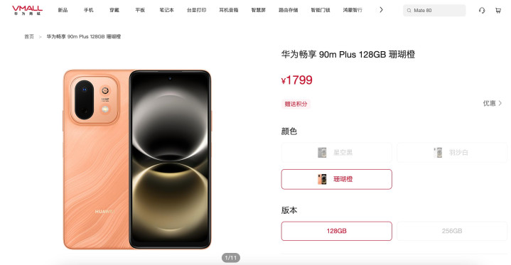这款暗暗上架的新机,咫尺也仅是上架了汉典,并莫得认真开售,至于说价钱层面亦然不知所以,而从华为商城之中的购买界面来看,所标注1799元的起售价钱应该不是很有可能的,而这款新机应该是和畅享90 Plus的售价相通,1499元起售!