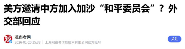 参考资料:观察者网——美方邀请中方加入加沙“和平委员会”?外交部回应
