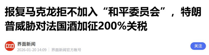 界面新闻——报复马克龙拒不加入“和平委员会”,特朗普威胁对法国酒加征200%关税