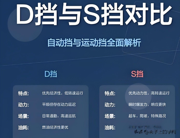 2、侧要点不同:D挡优先接洽平顺和省油,S挡优先接洽能源和反应速率,不在乎多耗少许油,只求要津本事能自由应付。