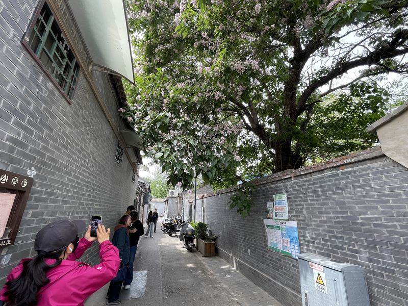 影相喜欢者孙先生告诉记者:“每年我都过来拍泡桐和楸树,主要喜欢这里的老北京嗅觉,有窄窄的巷子,有散播的市民,很有生存气味。”更多的搭客是随着酬酢媒体平台上的攻略来的,市民季姑娘说:“平时刷手机总能看到多样种种对于花的帖子,这条巷子红了有几年,网友们在网上直播花期。”