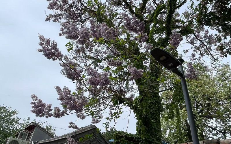 泡桐、楸树没让群众失望,满树鲜花开爆。泡桐硕大的花穗缀满枝端,犹如一串串紫水晶,淡紫、浅粉、莹白层层晕染。楸树挺拔的枝干间,一簇簇淡粉白色的小花密密麻麻地绽放,与巷子的青砖灰瓦呼应,尽显古朴娴雅。