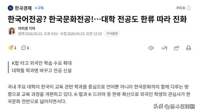 国内主要大学正以韩国语扶助干系学科为中心,对课程进行矫正,不仅涵盖谈话,还同期波及韩国文化。这是因为跟着K-POP、韩剧等韩流的扩散,异邦粹生的有趣已扩大到整个韩国文化限制。