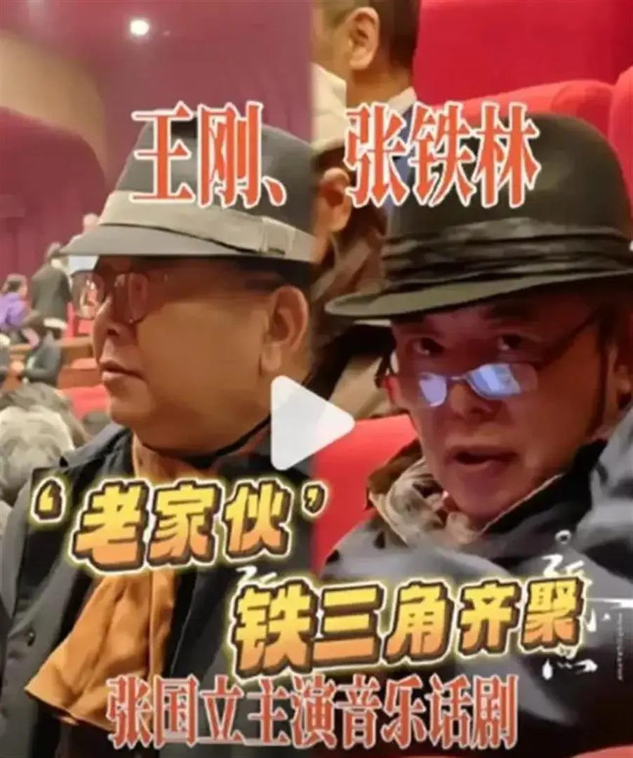台下的阵仗,比台上的戏还吸睛!王刚和张铁林竟然精确撞衫,黑帽子 + 黑框眼镜,一模同样!