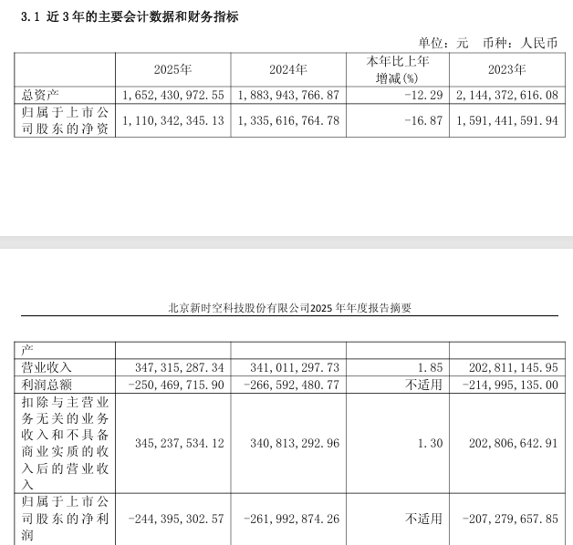 同日,时空科技裸露了2025年年度阐扬。阐扬期内,公司罢了买卖收入3.47亿元,同比增长1.85%;包摄于上市公司鼓舞的净利润为吃亏2.44亿元。